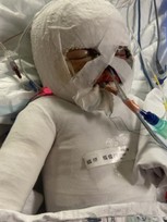 He was airlifted to the Royal Children’s Hospital in Melbourne, where he was put into an induced coma with second-degree burns covering 42% of his body.